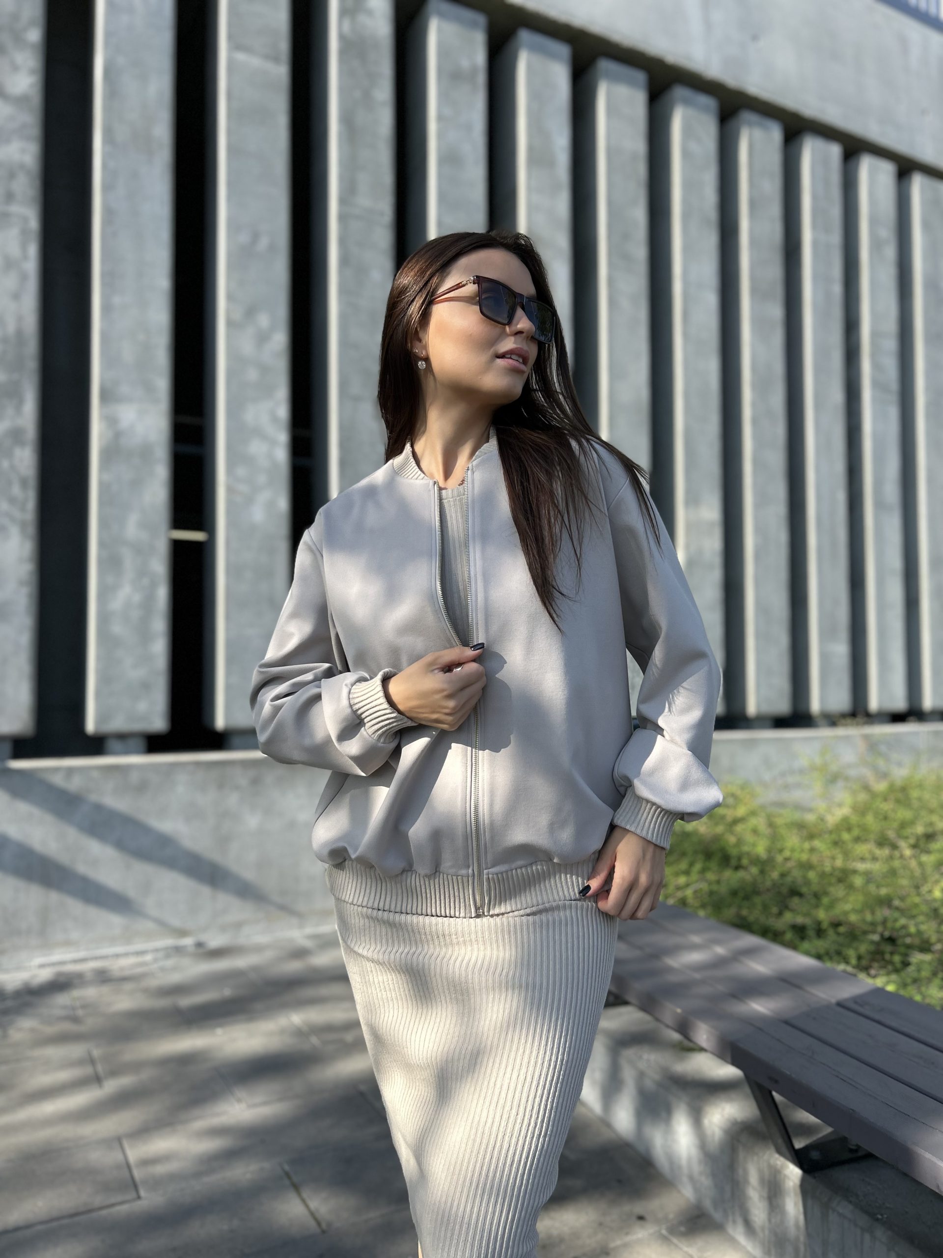 Oversize piegriezuma bomber jaka ar rāvējslēdzēju.
