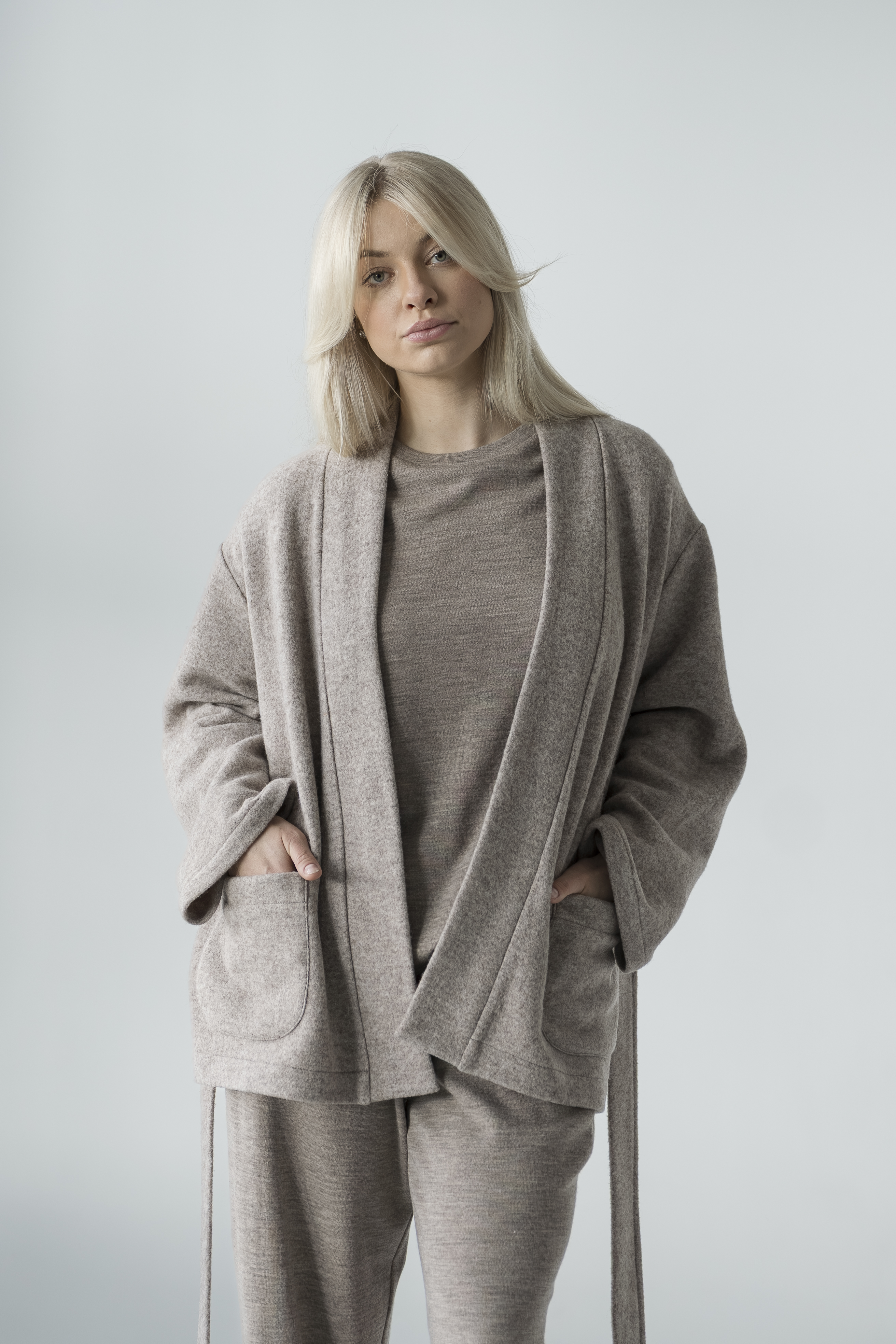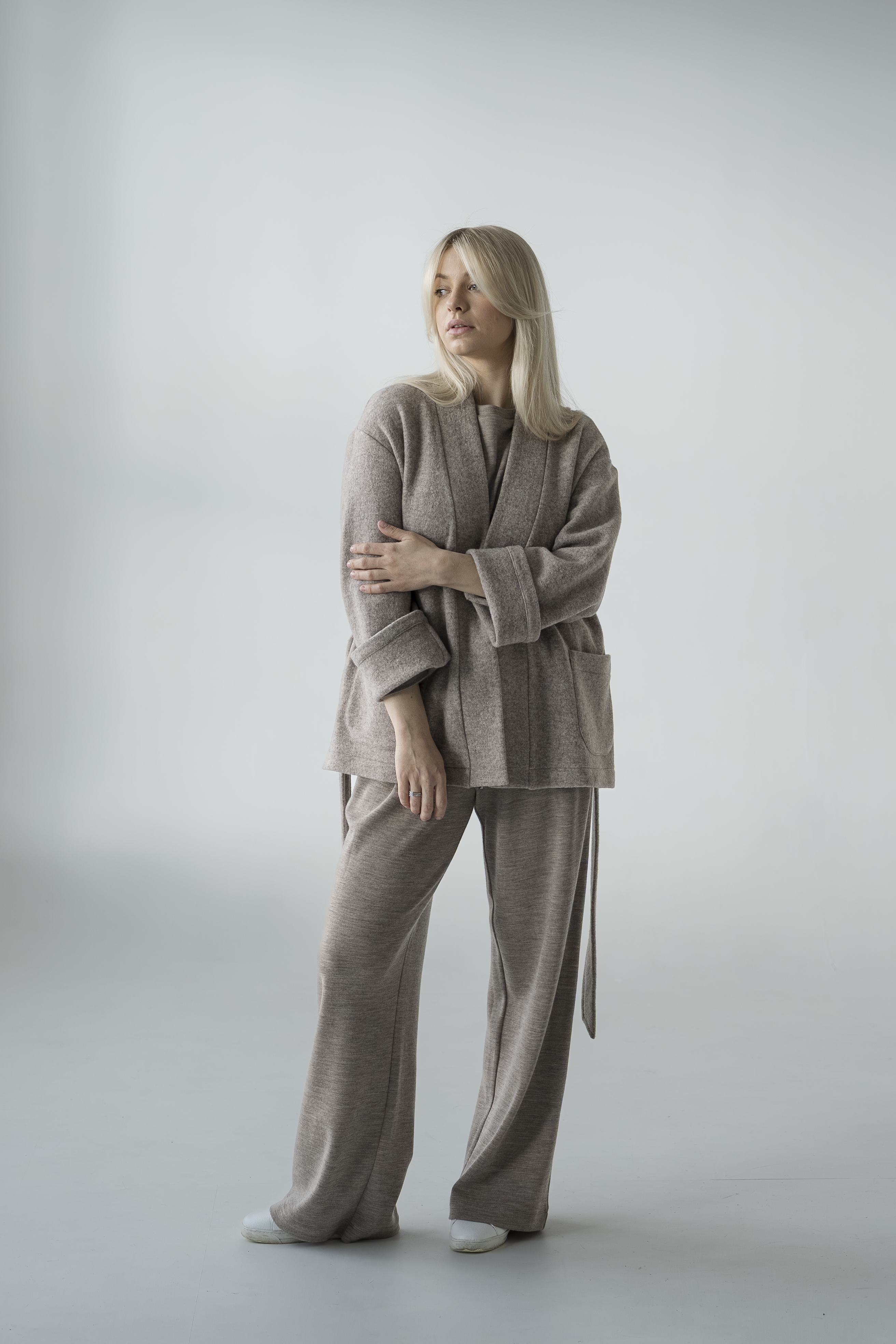 Modelei: Mēteļjaka S izmērs. Modeles parametri: auguma garums 174cm, krūšu apkārtmērs 80cm, viduklis apkārtmērs 63cm, gurni apkārtmērs 94cm.
