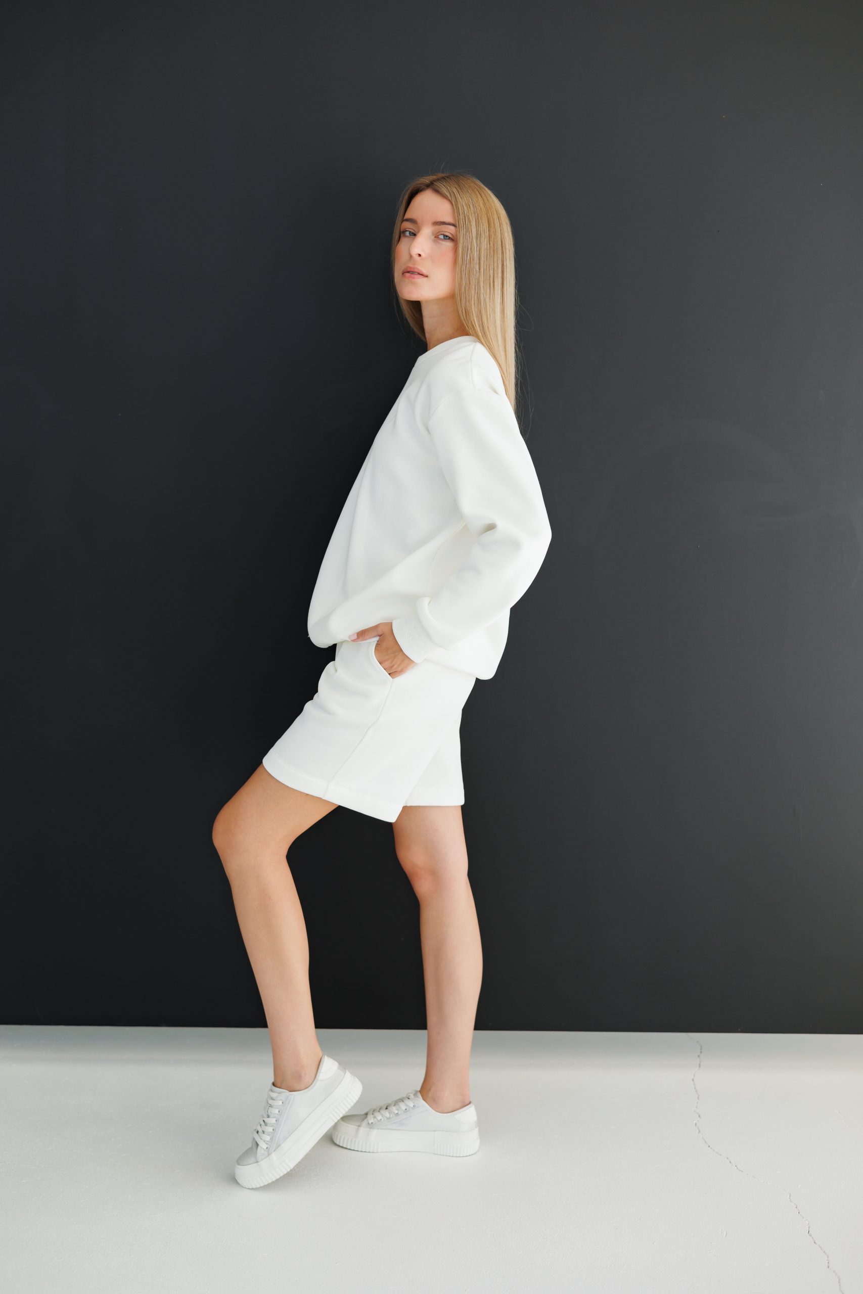 Kombinē ar tādas pašas krāsas biksēm vai šortiem